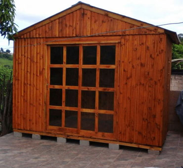 Joe's wendy houses- the trusted manufacturer of wooden cabins-has been in existence for over 35 years- serving customers in and around KZN. We strive for a quality guaranteed job and service excellence together with customer satisfaction. Quality pine tongue and groove timber is used for the walls with corrugated iron roof and treated with weatherseal wax. We have wide range of standard sizes and also manufacture custom sizes. Our cabins are suitable for - storeroom,guard huts,living quarters, playroom,site offices,tuckshops,etc.Also can be used to to garage your car.